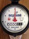 STEP 2 Once you open the meter box lid, lift the protective cap on the meter. On the face of the meter, there is a large dial and a display of numbers. For the residential meter, each rotation of the dial measures 10 gallons. Read the number display from left to right. Be sure to include the stationary zero. This is your meter reading. Meters measure water in gallons. Charges for the amount of water consumed are rounded to the nearest hundred gallons used during a billing period. Compare that reading to what your bill states as your current or present reading. There is also a small blue dial or triangle. This is a leak indicator. A small leak such as a toliet will be very difficult to notice on the large dial but the leak indicator should be moving if leak is present; maybe slow, but moving.
